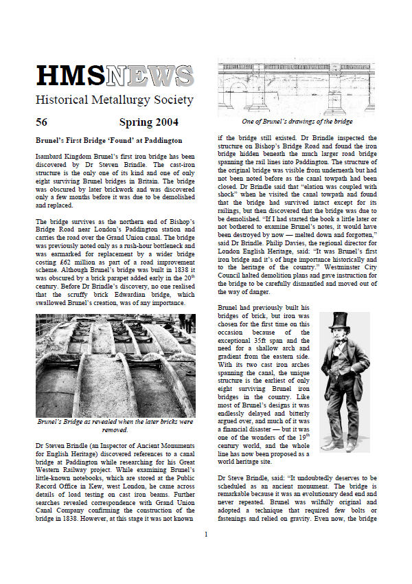 Contains: *Brunel’s First Bridge ‘Found’ at Paddington. *Metalworking at Minehowe, Orkney.