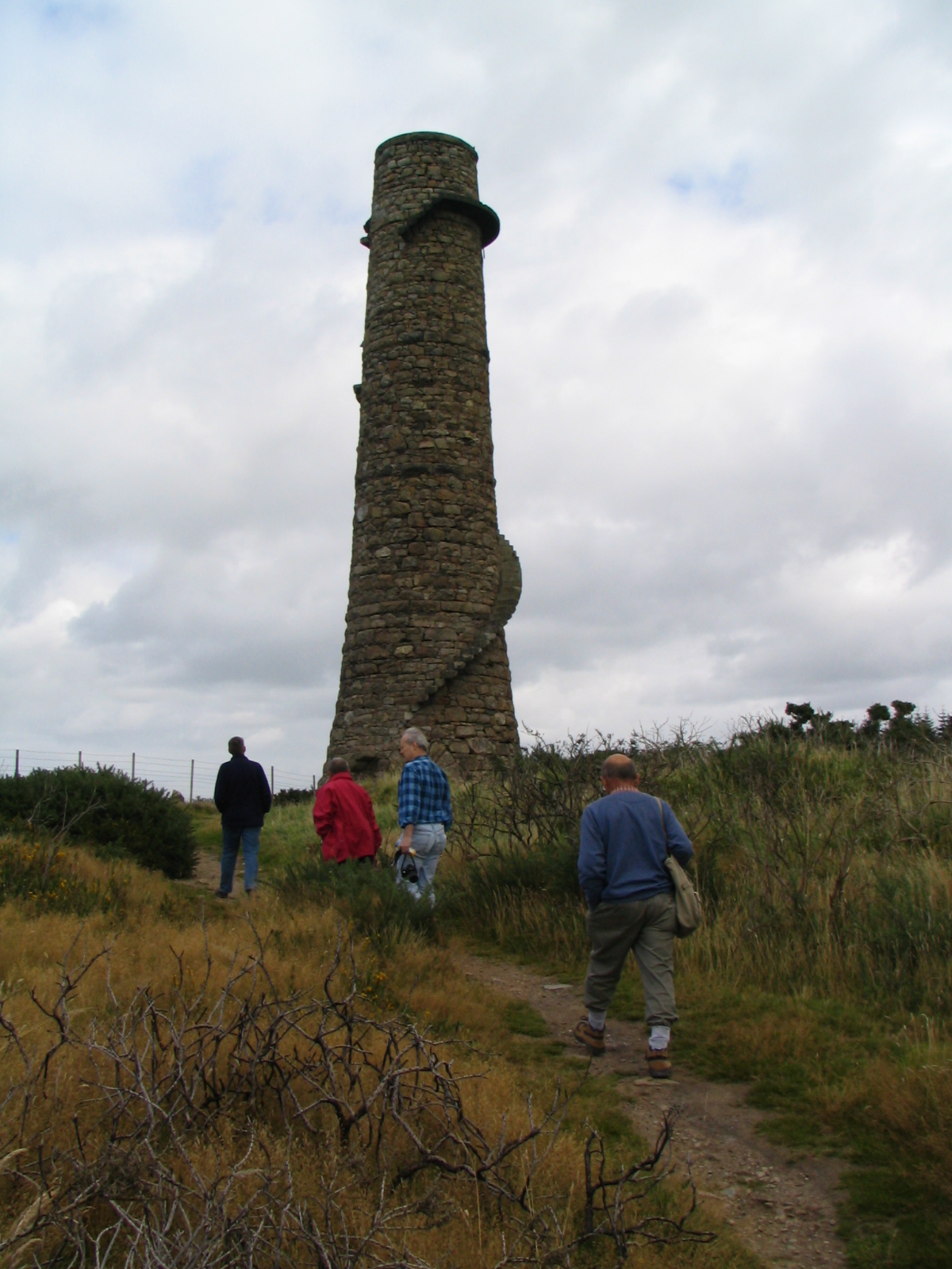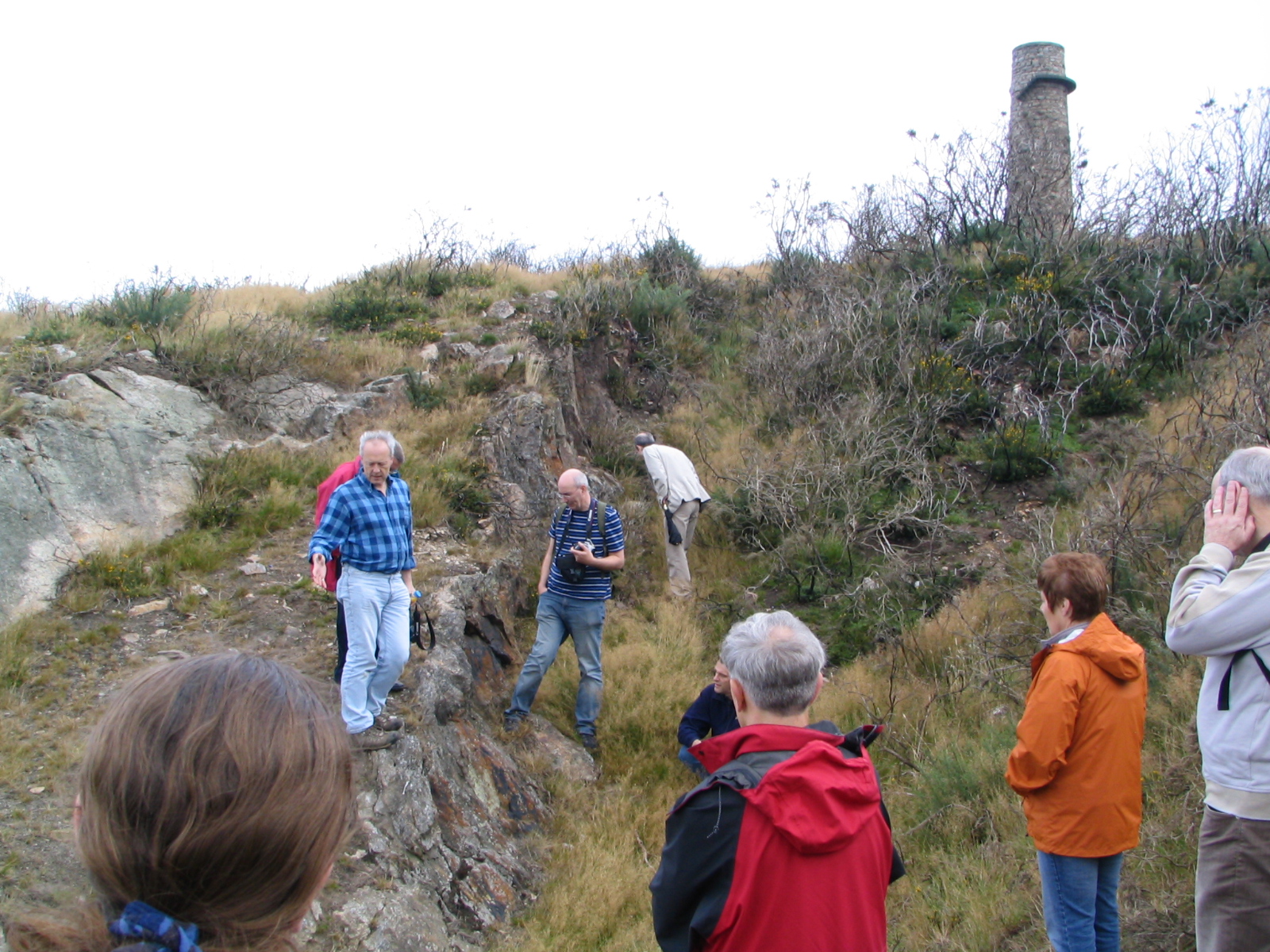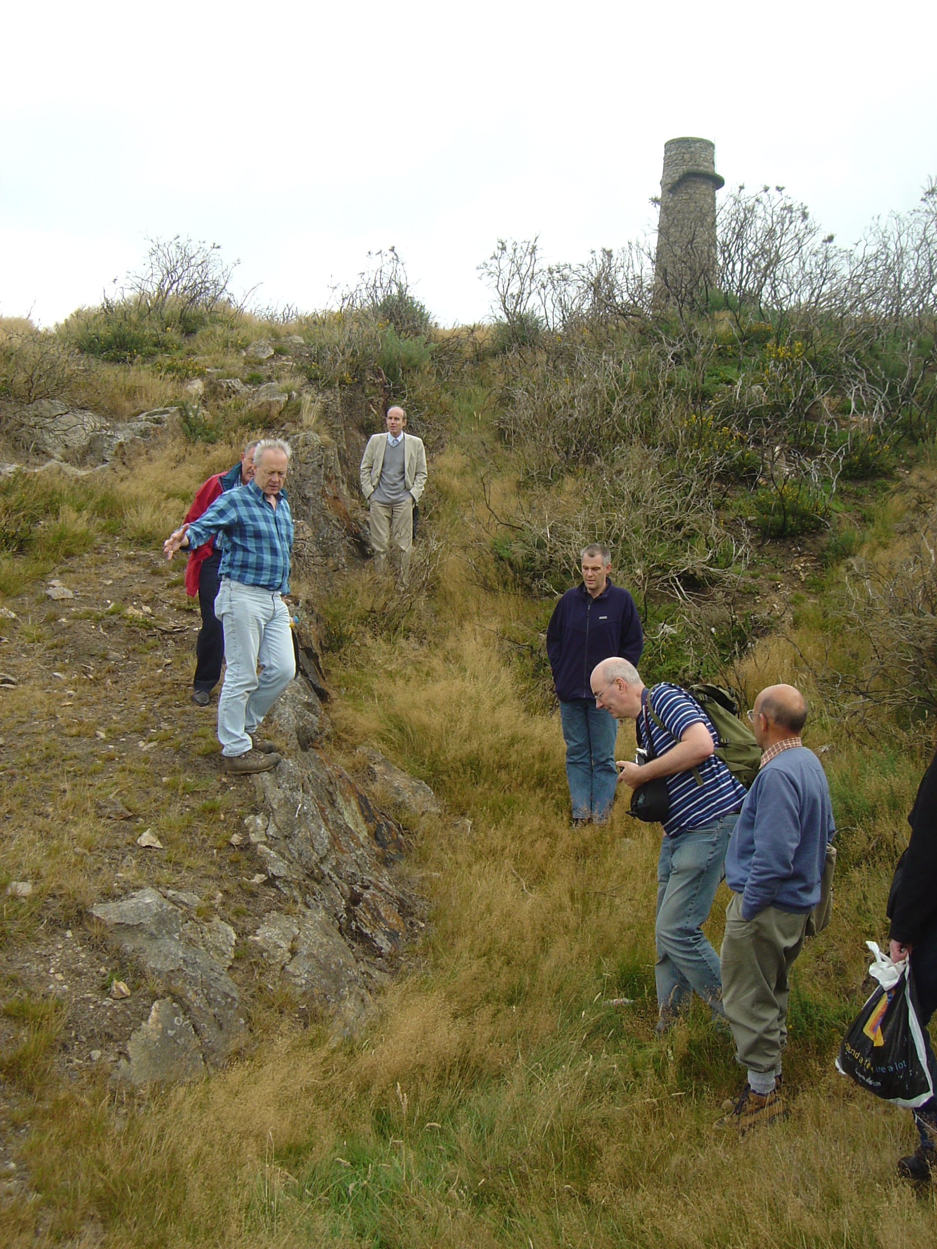 The final stop of the fieldtrip was the hill top landmark chimney which is 26m tall and 235m above sea level. With glorious views over Dublin Mountains and Dublin itself, this chimney is a remnant of the 19th century lead industry. The chimney was originally even taller and would have had a safety rail on the external spiral granite staircase. Both the chimney and the 2m high flue which stretches for almost a mile were constructed in 1836, after complaints that the fumes from the smelting works at Ballycorus were affecting local livestock. As well as disposing of the fumes, the long length of the flue meant that the hot gases were able to cool leaving the valuable lead deposited on the interior brickwork; this was recovered using the doors at regular intervals along the flue.